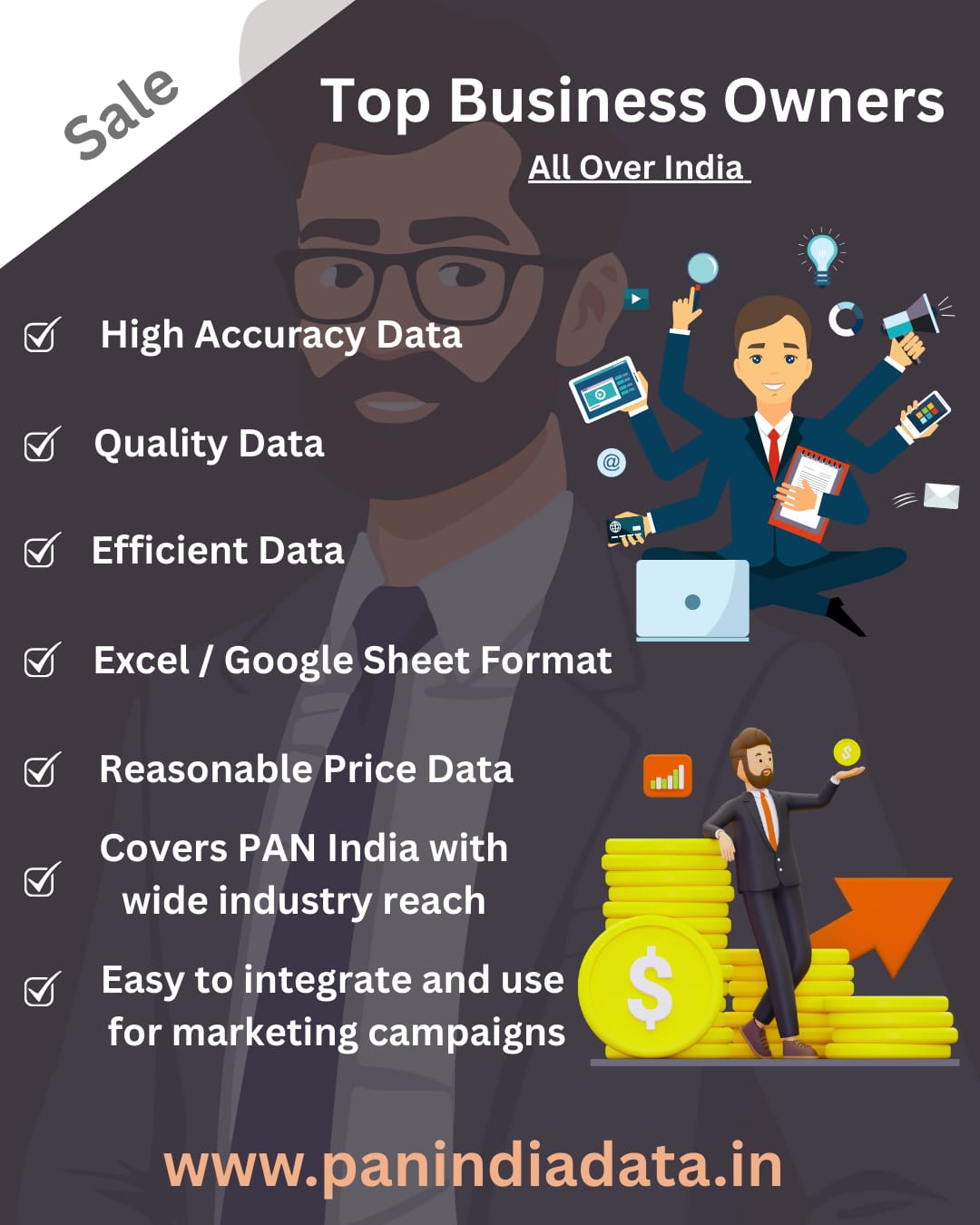 The Top Business Owners Database is a high-value collection of verified records featuring influential business owners, founders, and senior decision-makers. This dataset is designed for teams that require precise, leadership-level contacts for strategic outreach—such as B2B marketing, networking, investment prospecting, collaborations, supplier partnerships, or high-ticket product sales.